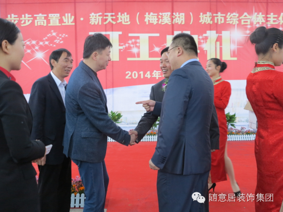 随意居董事长彭小堃与步步高集团董事长王填、步步高置业总裁周良亲切握手,为再度合作表示良好祝愿!